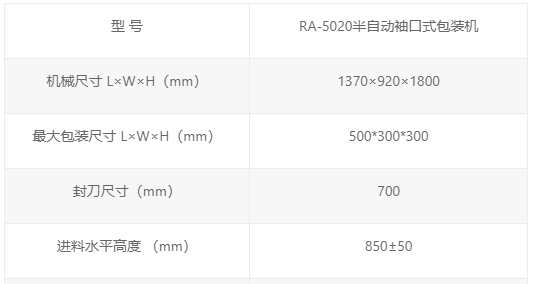 5020是SCT系列袖口式包装机中的一款经济型机器。该机操作简单,由单人单手推料,机器自动封切进入收缩包装机;也可根据客户的需求选择人工摆料或自动推料,主要采用PE收缩薄膜。